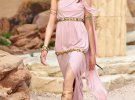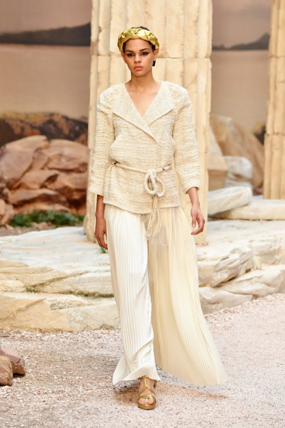 Практически каждый образ имел форму. Ряд светлых твидовых костюмов фактурой и оттенками напоминал о мраморе. Текстуры светло-серых туник вызвали ассоциации со скульптурами древнегреческих богов. Также автор создал легкие платья с завышенной линией талии. Одежду покрасили в яркие оттенки земли и моря. Фаворитом стал насыщенный темно-синий.