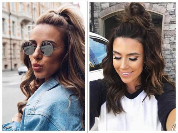 Прическа half up стала популярным трендом среди западных звезд шоу-бизнеса, таких как Дженнифер Лопес, Бейонсе, Белла Хадид и Рианна. Стиль дословно переводится как "половина волос, зачесанных наверх" и подходит для длинных, средних и коротких волос.