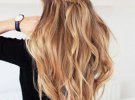 Можно заплести пряди на висках в косы и соединить их на затылке шпильками, предварительно начесав немного на макушку.