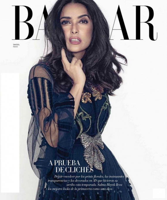 50-летняя голливудская актриса Сальма Хайек украсила обложку апрельского номера мексиканского Harper's Bazaar. На фото появилась в роскошном нежно-розовом платье из новой коллекции Gucci.