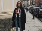 Самая популярная модель аксессуара - черная лента. Цвет стал трендом благодаря универсальности. Если образ выполнен в светлых или, наоборот, темных оттенках, можно шарф сделать акцентом. Звездные модницы предлагают сочетать принтованные варианты пастельных оттенков или экспериментировать с яркими моделями.