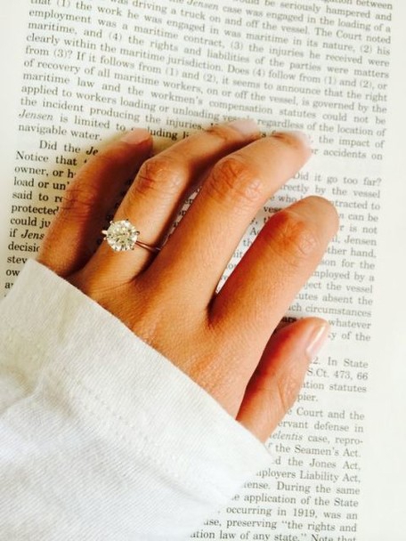 Первую ступеньку в рейтинге занимает кольцо американской телезвезды Лорен Конрад - классический золотой ободок с бриллиантом круглой огранки.
