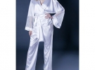 Основная коллекция - классический шелковый халат или комплект длиной до пола. Новинкой стали комплекты со штанами и прозрачными топами, халаты с кружевными вставками на рукавах и силуэте.