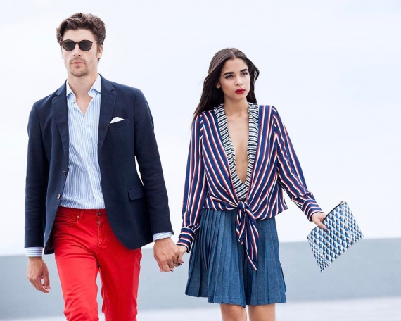 Среди любимых оттенков пары - голубой, красный, белый и серый. Также внимание акцентируют на полосатых и цветастых принтах.