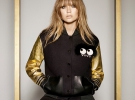 Модель примерила спортивные костюмы и платья украшенные золотистыми линиями и декором в виде квадратных камней. Из верхней одежды дизайнеры создали жилеты с пони и песца, кожаные косухи и бомберы.