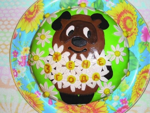 Киевлянка Яна Никитенко, 30 лет, в день рождения дочери 3-летней Евгении испекла торт "Винни-Пух". Украсила мастикой, из которой вырезала мишку.