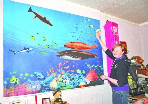- У меня есть настоящий аквариум, поэтому и обои под него выбрала, - рассказывает. - Четыре года тому назад я с мамой делала ремонт комнаты. В магазине стройматериалов натолкнулись на светящиеся корейские обои.