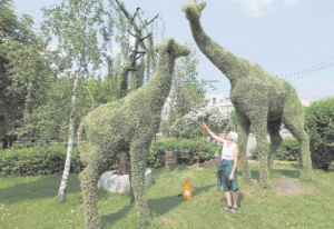 — Самое сложное — заполнить каркасы землей, — говорит Леонид Волков, директор зеленстроя Ленинского района города. — Основу набиваем смесью опилок и чернозема. Сверху по металлическим прутьям обмазываем питательной почвой. В нее высаживаем цветы. На один квадратный метр нужно минимум тысячу растений. Их выбираем особенных сортов, клумбовые не годятся. Эффектны разновидности седума. Из более темного хорошо выкладывать пятна жирафа или львиную гриву.