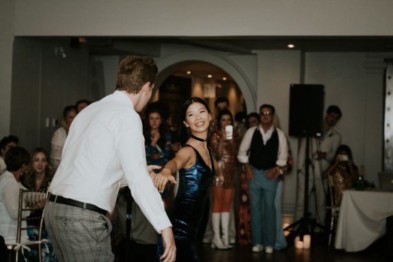 Влюбленные Коко и Дилан показали, как можно сделать необычайно нежную свадебную вечеринку в силе 70-х. Праздник, который планировали год, перенес пару и гостей в прошлое.