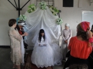 -Это добрый знак от невесты, - говорит Сара. - Оторвать кусочек фаты тоже хороший знак. В этот день все подходят к новобрачным и просят у них все то, что они хотели бы попросить у Бога. Считается, что невесты являются посредниками в этот день и все, что они попросят, сбудется.