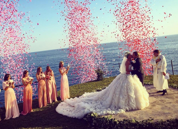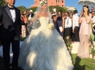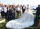 Собираясь к алтарю, Джованна не изменила себе: пышное подвенечное платье Alexander McQueen с умопомрачительным шлейфом едва уместилось кадр. Впрочем, некоторые гости (в том числе светский лев Дерек Бласберг и модель Марина Линчук) все же изловчились сделать удачные снимки — и похвастались ими в Instagram.