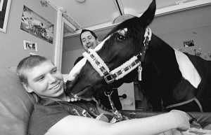 Конь Тайгер посещает больного 22-летнего англичанина Бена Болдуина в его доме. Мужчина болен церебральным параличем и эпилепсией. Не может подняться с постели и выйти на улицу. Родители Бена уговорили врачей позволить завести коня в комнату к сыну.