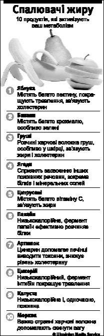 Овощи и фрукты ускоряют обмен веществ. Среди лидеров — яблоки, бананы, груши, ягоды, цитрусовые, папайя, артишок, цикорий, капуста, морковь и зеленый чай.