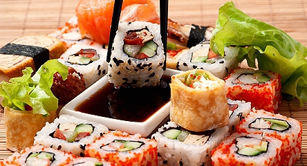 Эта японское блюдо готовится из риса, который является углеводом. То есть продуктом, который слегка насыщает и повышает аппетит.
