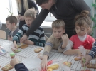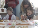 Праздничное занятие одновременно выполняло терапевтическую функцию. Дети придумывали орнаменты, рисовали их вместе с родителями. Печенье для рисования было только с кухни - теплое и ароматное. Родители показали детям, как пользоваться кулинарными красками, а потом позволили рисовать так, как им хочется.