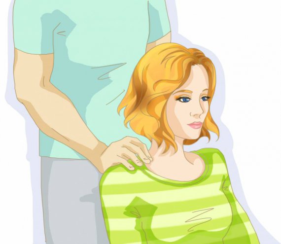 Шаг 1. Посадить человека, которому делают массаж, в кресло с низкой спинкой. Стать за ним, положить ладони на плечи. Медленно, не сильно нажимая, перемещать пальцы в направлении ключицы в течение 15-20 секунд. После этого делать паузы. Повторить 3 раза.