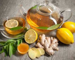 Для приготовления имбирного напитка для похудения понадобится 3 чайные ложки зеленого или белого чая, корень имбиря, половина лимона, мята.