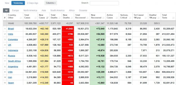 За сутки 30 июня в мире обнаружили 430 717 новых случаев коронавируса. Больше всего больных фиксировали в Бразилии (63 140 случаев), Индии (43 360) и Колумбии (28 315).