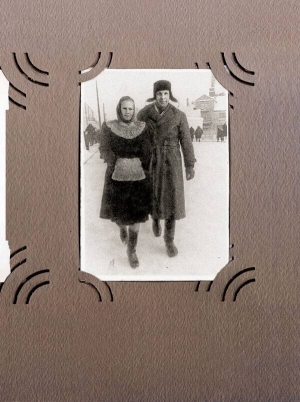 Мала муфту й моя мама в ті роки - на фото вони з моїм батьком. Дорослим я бачив ту муфту у скрині з погризеним хатніми комахами старим одягом. Носити її було вже неможливо. Та й мода змінилася. Де мама ту муфту придбала, запитати тоді я не здогадався. Так само, як і про стару батькову каракулеву шапку, в якій я в мороз катався на лижах і ходив на ковзанку.