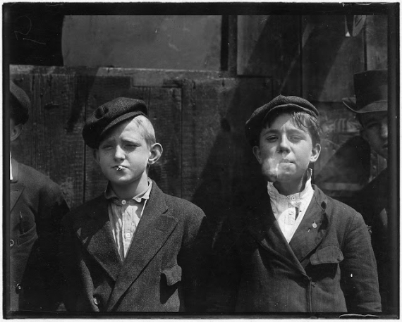 Именно в это время фотограф Льюис Хайн сделал целый ряд фотографий малолетних газетчиков. Как видно из фотографий, дети, которые должны были работать, перебирали плохие привычки у взрослых, - курили и ели фастфуд.