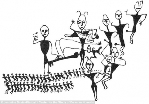 На древних картинах представлены не только человеческие фигуры обоих полов, но и животные. Также некоторые фигуры совмещают в себе мужские и женские черты, а также отличаются масками и украшениями. По мнению исследователей это могут быть транссексуалы либо шаманы. Судя по изображениям, некоторые участники ритуальной оргии достигли состояния экстаза или транса, некоторые же занимаются половыми сношениями ради конкретной цели - последующего деторождения. На это указывают условные изображения эмбрионов.