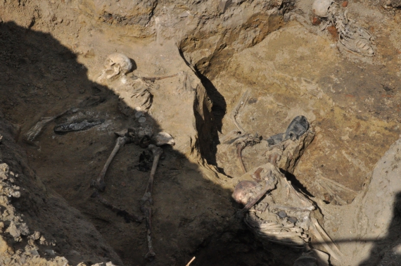Археологи во дворе львовского музея "Тюрьма на Лонцкого" обнаружили два места массового захоронения людей - всего 12 останков скелетов. На месте музея в 1939 году было управления НКВД, в 50-х годах - КГБ и гестапо. Историки предполагают, останки - жертвы репрессий 40-50-х годов прошлого века.