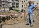 К месту раскопок подходит Остап Козак из львовского коммунального предприятия "Доля". В прошлом году предприятие делало археологические раскопки на территории музея. В траншеях вдоль стены нашли останки одного человека, а также кости животных.