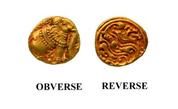 В том же шурфе были обнаружены восемь золотых монет, на которых были изображены слоны. Вес каждой монеты около 4 граммов. Монеты датируются более ранним временем 679 и 726 г.н.э.