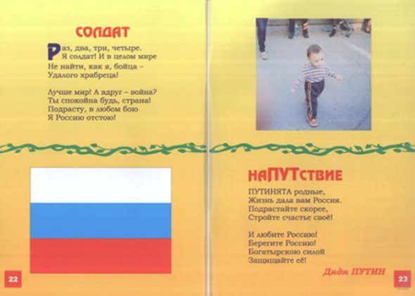 В книге также предлагается вступать в ряды "путинят" - защитников отечества и "дяди Путина".