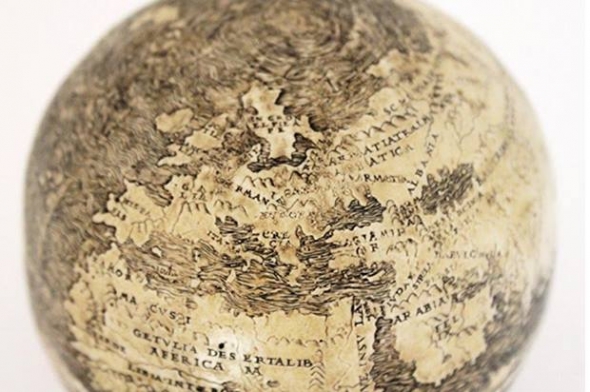 Глобус, датированный началом 16 в., покрыт надписями на латинице. Северная Америка на нем выглядит как два небольших острова.