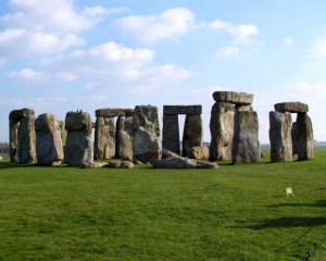 Стоунхендж - это каменное мегалитическое сооружение в Великобритании. Оно расположено примерно в 130 км на северо-запад от Лондона, в 3,2 км на запад от города Эймсбери и в 13 км к северу от Солсбери. Стоунхендж включает в себя кольцевые и подковообразные сооружения, построенные из грубообработанного камня. Назначение Стоунхенджа до сих пор не известно.