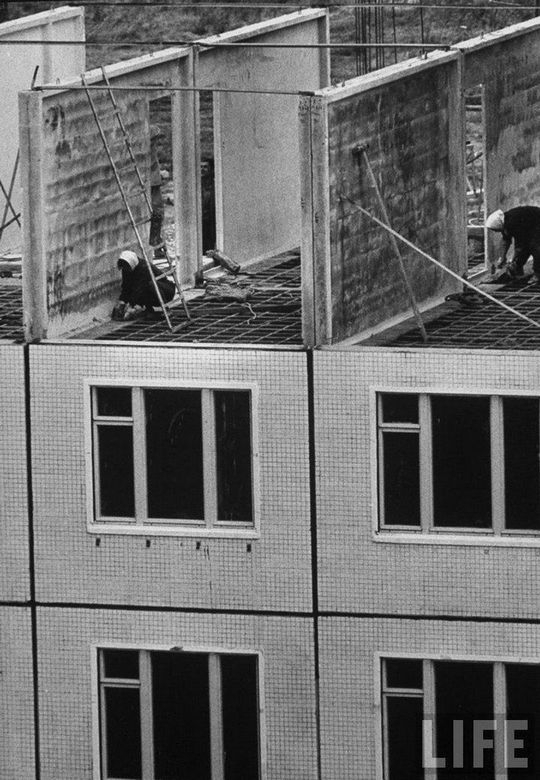В 1963 году американский журнал LIFE опубликовал фоторепортаж о массовом строительстве жилья в Москве.