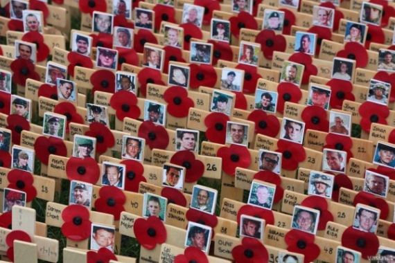 Их будут расставлять до самого Дня поминовения — воскресенья. На каждом кресте имена погибших. Есть даже кресты в память о военных корреспондентах и животных, сражавшихся вместе с солдатами.