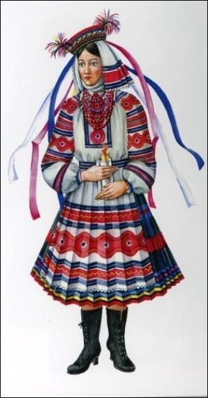 Воинственность свах должны были подчеркнуть две щепотки крашенного пера — "рога" — на шапочке-"шлеме".
