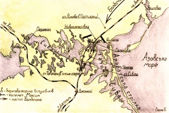 В течение недели группа украинских воинов с боями продвигалась в Мелитополь, пытаясь опередить немецкий 52-й корпус генерала Роберта Коша, что также двигался на Крым. В то момент насчитывали до 30 тыс. человек. Берлин помогал Киеву освободить территорию от большевиков. Это было одним из условий Берестейського мира, который власть УНР и Германии заключили 9 февраля 1918-го.