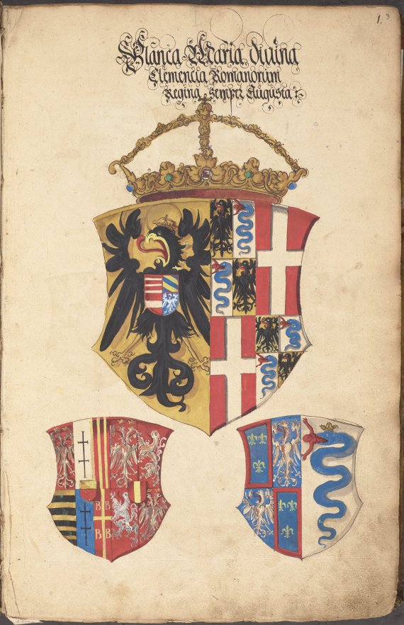 Гербовик сохраняет рисунки более 1,8 тыс. гербов. Посвященный императрице Бьянке Марии Сфорца, герб которой и открывает книгу. По словам исследователя это показывает более широкие отношения между женщинами и геральдикой в позднем средневековье. Далее, по тогдашней традиции, следуют гербы правителей, затем идут гербы городов и церквей, а напоследок - знатных родов Священной Римской империи.