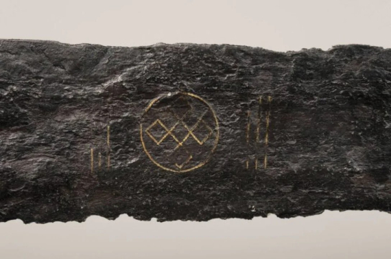 На клинке исследователи увидели особую эмблему. Это узор в виде "бесконечного узла" из пяти переплетённых квадратов внутри круга. Символ часто ассоциируется с духовным единством, верностью и силой. Такие представления были распространены среди германских и скандинавских племён.