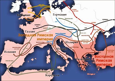 Великое переселение народов – условное название исторической эпохи, охватывающей IV–VII вв. н.э. В это время (возможно, в результате климатических изменений) пришли в движения этносы из разных частей Евразии: готы (и другие германские племена), гунны, аланы, славяне, турки, фино-угорские племена и другие.