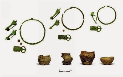 Многие украшения изготовлены из бронзы, другие – из железа и серебра. Уникальной находкой стало обнаружение четырёх фибул (застёжек для одежды) в виде цикад.