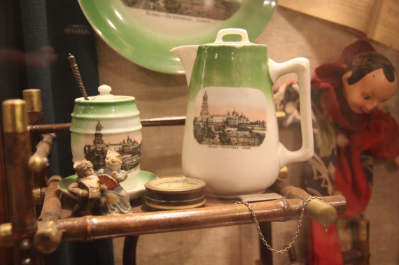 По словам Анатолия Кияшко, в Киеве изготавливали также сувенирную посуду. Особым спросом пользовались чайники, чашки и блюдца. На них изображали чаще всего Киево-Печерскую Лавру. Посмотреть эту святыню съезжались не только из близлежащих городов, но и из Москвы и других крупных городов. Несколько реже можно было встретить сувенирные коробки из-под спичек, пепельниц и других предметов. На низ помещали основном рекламу кондитерских фабрик и крупных предприятий.