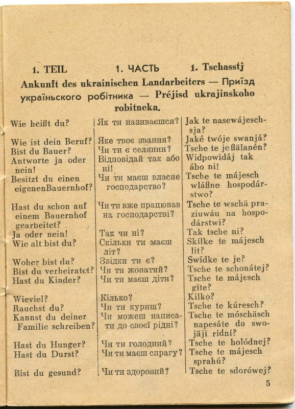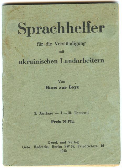 Предлагаем вашему вниманию первое издание разговорника для общения немецких хозяев с украинскими сельскохозяйственными работниками.
