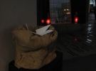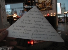 У свечника разложены два мешочка с копиями писем и воспоминаний, свернутыми треугольником, как полевая почта. Каждый посетитель может взять для себя одно из писем.