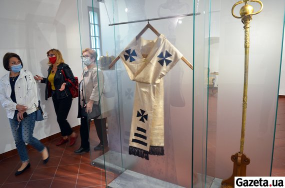 "Эта экспозиция не только демонстрирует экспонаты, но и освещает три достоинства митрополита, которые актуальны для современного мира. Это отказ от материальных благ, его вера и то, как он мужественно переносил болезнь. Шептицкий достойно прошел испытание, показывая пример другим. Показательным является его белый льняной плащ, выставленный здесь. Митрополит Андрей был графом из богатой семьи, а пользовался простой одеждой в заплатах. Трудно было его уговорить надеть что-то новое. Рассказывают, что монашки отрезали и меняли в плаще рваный рукав, когда Шептицкий спал", - говорит художник-реставратор, автор экспозиции Ирина Гирна.