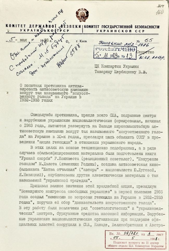 Служба безопасности Украины обнародовала архивные документы КГБ о замалчивании трагедии Голодомора советской властью.