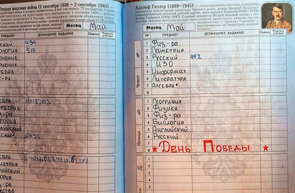 В одном из российских издательств был напечатан школьный дневник с изображением и краткой биографией Адольфа Гитлера.
