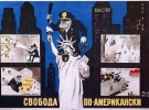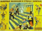 Чем пугали людей в Советском Союзе? А тем, что они ни проверить, ни увидеть за "железным занавесом" не могли - нечестными выборами, разгулом криминалитета и недоступностью социального и экономического обеспечения. По мнению авторов плакатов, советские граждане имели все эти блага.