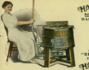 Первая стиральная машина, запущенная в серийное производство, была создана в 1907 году Уильямом Блэкстоуном, у нее был ручной привод. До 1875-го в Америке зарегистрировали более 2 тыс. патентов на устройства для стирки. В Европе первые стиральные машины начали производить в Германии в 1900 году. Современные машины с электрическим приводом появились в 1908 году. Механизация труда практически привела к исчезновению профессии прачки. В 1949 году в США появилась первая автоматическая стиральная машина.