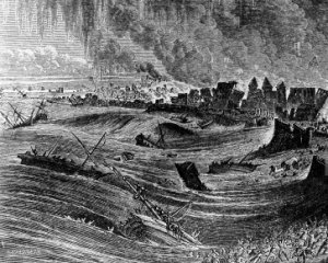 Землетрясение силой 8-9 баллов по шкале Рихтера началось 1 ноября 1755-го в португальской столице Лиссабоне. Из 275 тыс. человек, населявших город, погибло более 90 тыс. 85% зданий разрушено подземными толчками, цунами и пожарами.
