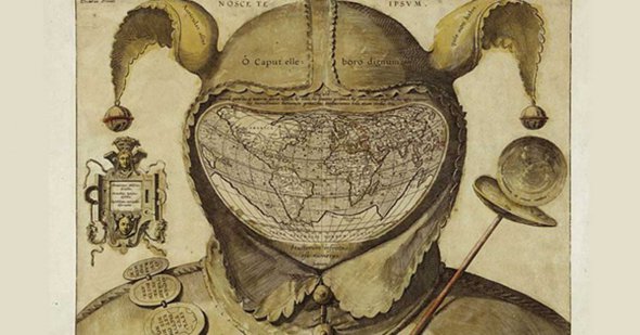 Карта мира на ней обрамленная в шляпу шута. Ученые считают, что это наиболее раннее использование карты мира в визуальной шутке, сообщает Ancient Origin.