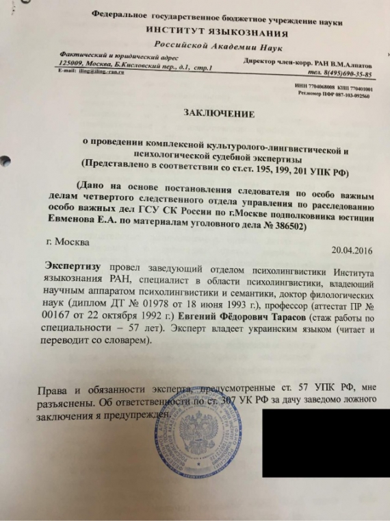"Отдельно отмечается упоминание участия российских военных в украинском конфликте, по мнению эксперта, не соответствует действительности", - написал адвокат Иван Павлов.